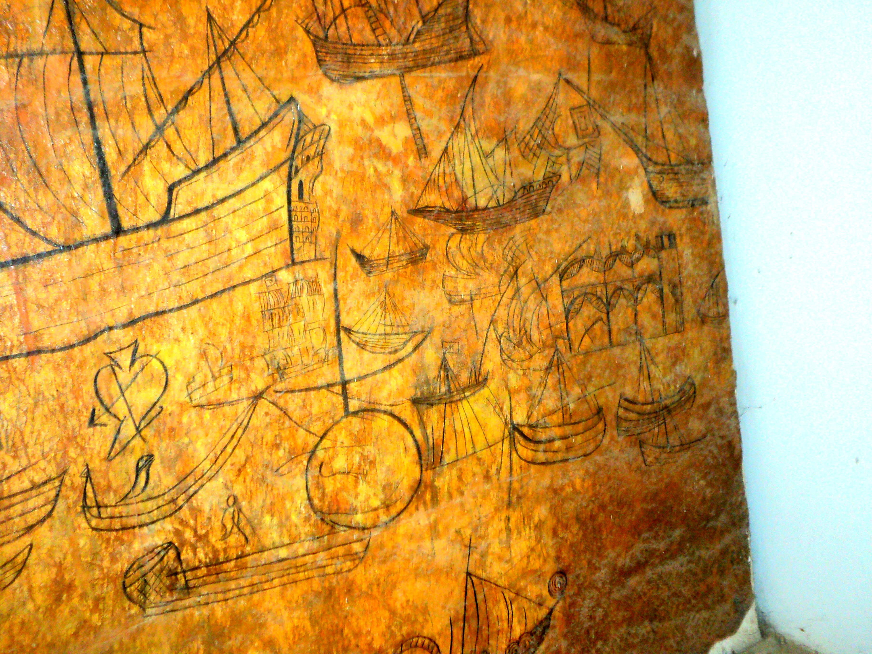 The pentagon-shaped church interior has four small wooden pews and an altar with a pulpit. Measuring 15 by 8 feet, it has a capacity to sit 12 people during mass. Just like its bigger counterparts, the church has three normal doors for access.The inside walls are decorated with inscriptions in Latin. Above the stained glass windows and the entrance doors are painted the words, Venite Ad Memone (Come to me my people), Haec Est Victoria Quae Vincit Mundum Fides Mustra (This is the victory that has won the world by our faith), Benedicite Coeli Domino Benedicite (Blessed be the sky and blessed again) and finally Universa Germinatia In Terra Domino, which translates to, everything will germinate in the sky and also on the earth.